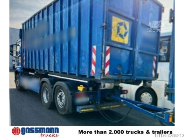 Estado: usado, kilometraje: 683.238 km, potencia: 345 kW (469,07 CV), primer registro: 06/2014, peso total: 26.000 kg, color: blanco, configuración de ejes: 3 ejes, próxima inspección (TÜV): 05/2023, frenos: retardador, tipo de engranaje: automático, clase de emisión: Euro 6, longitud del espacio de carga: 6.500 mm, Equipamiento: ABS, Programa electrónico de estabilidad (ESP), aire acondicionado, filtro de hollín, Equipamiento: