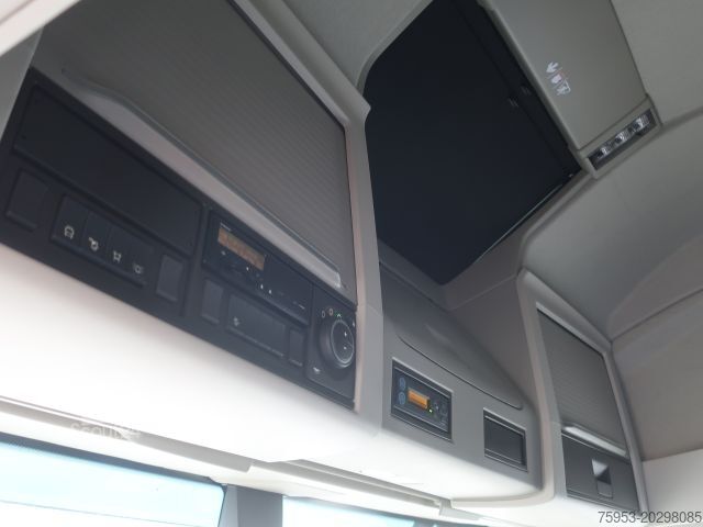 Aire acondicionado de estacionamiento, ABS, sistema de alarma, espejos retrovisores exteriores ajustables y calefactados eléctricamente, manos libres para teléfono móvil, trampilla en el techo, frenos de disco, deflector de techo ajustable, bloqueo de diferencial, tacómetro, elevalunas eléctricos izquierdo y derecho, asiento del conductor con suspensión neumática, suspensión de ballesta-neumática, 12 marchas, cambio automático, elevación y descenso, climatización: climatizador automático + aire acondicionado de estacionamiento, frigorífico, volante deportivo, bocinas neumáticas, volante multifunción, sistema de navegación, faros antiniebla, entretenimiento: navegador con pantalla, cabina dormitorio, 2 literas, asiento del conductor calefactable, parasol, paquete de spoilers, preinstalación para teléfono, control de crucero, paquete de seguridad: control de crucero adaptativo + asistente de frenado de emergencia + asistente de mantenimiento de carril, freno adicional retarder, motor Euro 6, configuración de ejes 4x2, pilotos traseros LED, faros LED, control de distancia adaptativo.
