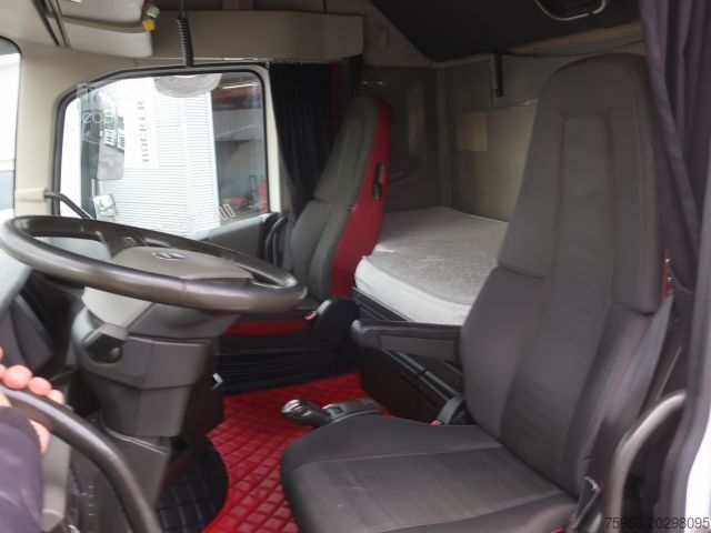 ABS, faros de trabajo, retrovisores exteriores eléctricos y calefactados, sistema manos libres para teléfono móvil, trampilla en el techo, frenos de disco, alerón de techo ajustable, bloqueo de diferencial, elevalunas eléctricos izquierdo y derecho, cabina Globetrotter XL, asiento del conductor con suspensión neumática, suspensión mixta de ballesta y aire, 12 marchas, bajo nivel de ruido, caja de cambios automática I-Shift, función de elevación y descenso, climatización automática y aire acondicionado estacionario, frigorífico, volante de cuero, bocinas de aire, volante multifunción, faros antiniebla, entretenimiento: radio/CD, distancia entre ejes 3800, cabina dormitorio, 2 camas, asiento del conductor calefactado, paquete de alerones, calefacción auxiliar estándar, capacidad del depósito 870 l (aluminio) + 405 l (aluminio), control de crucero, paquete de seguridad -1, freno adicional retarder, luz larga adicional, fórmula de eje 4x2, aire acondicionado estacionario, claraboyas, barra de luces con 4 focos adicionales y 2 balizas giratorias amarillas.